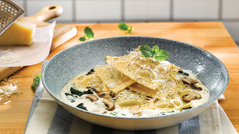 - Add the white sauce and mix together until hot then mix in the prepared cooked porcini ravioli