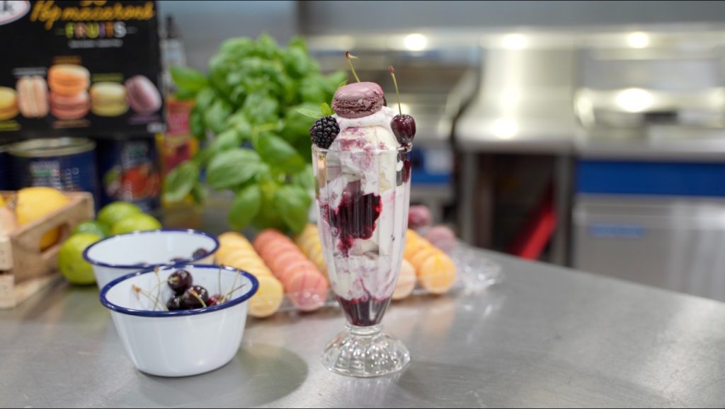 - Spoon a 1/4 of the remaining blackcurrant mix into a sundae glass and layer with the remaining ingredients.
