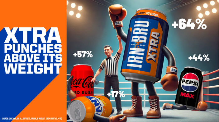 IRN-BRU is a carbonated soft drink made to an original secret recipe, which contains 32 flavours.