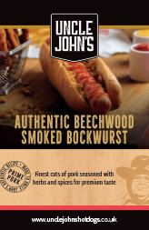 Uncle John’s Hot Dogs are made from the finest cuts of smoked pork, traditionally smoked in a Beechwood smoker to bring authentic, quality taste. The perfect balance of herbs and spices give their products a superior flavour; from the traditional American style Bockwurst to the artisanal-inspired Bratwurst.