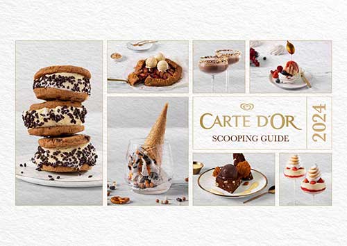 Stock your freezers with luxurious blackcurrant-raspberry ice cream marbled with cream-flavoured ice cream with a sour cherry sauce and a cracking milk chocolate shell. Or a decadent blend of hazelnut and caramel-almond flavoured ice creams covered in a salted hazelnut sauce and coated in white chocolate with caramelised hazelnut, almond, and pistachio pieces.